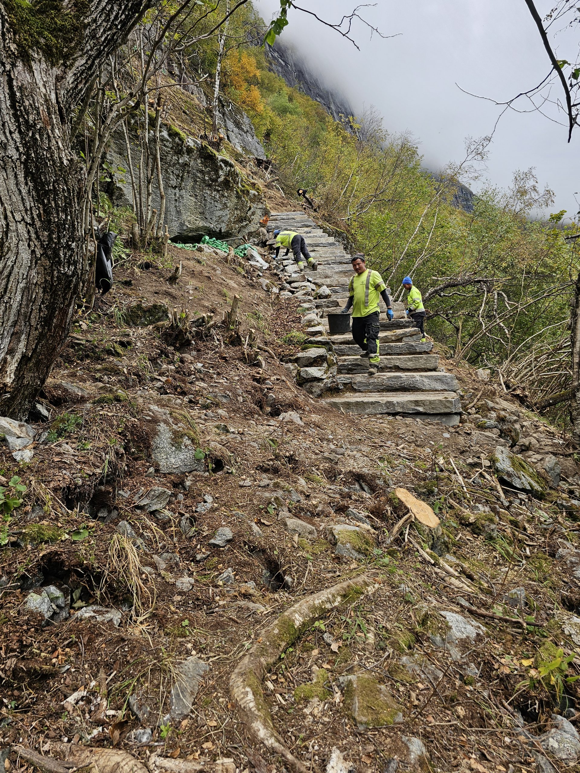 Sherpaene har avsluttet arbeidet i år, og det er lagt i underkant av 50 nye trinn. De er nå ferdige med den mest krevende delen opp til Øver Løkhammarn.