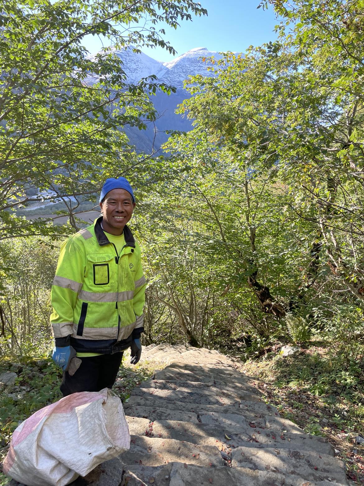 Det er fire sherpaer som har jobbet i trappa i år – Ang Tshering Sherpa, Purna Bahadur Magar, Dipak Kumer Thapa Magar og Phinjo Sherpa. I tillegg til å bygge trapp har de også gått over hele trappa og stabilisert trinn der det har vært behov for det.